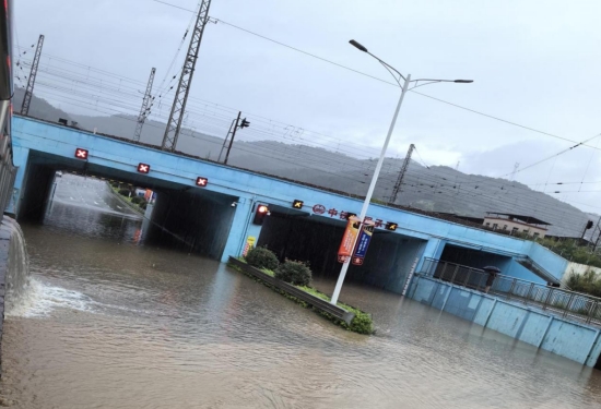 經(jīng)過現(xiàn)場(chǎng)察看,由于短時(shí)間降雨量太大,龍津河水位暴漲高于通道出口頂標(biāo)高,河水倒灌至下穿通道導(dǎo)致交通中斷,下穿通道水泵房三臺(tái)水泵全部啟動(dòng)抽水也無(wú)法滿足排水要求。公司防汛小組到達(dá)現(xiàn)場(chǎng)后,連夜組織人員拉好警戒線,設(shè)置警示標(biāo)志,防止車輛進(jìn)入下穿通道,并調(diào)度4輛應(yīng)急車輛及時(shí)排水并清洗路面;同時(shí),提前與鐵路部門、交警部門聯(lián)系,暫時(shí)封閉該段線路。經(jīng)過6小時(shí)的不斷抽水,路面已基本暢通,搶險(xiǎn)過程未發(fā)生任何險(xiǎn)情和人員傷亡。