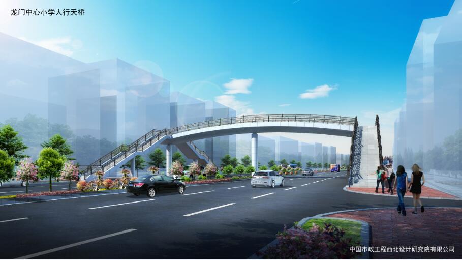 龍門中心小學(xué)人行天橋位于羅龍西路龍門中心小學(xué)西側(cè)約80米,主梁采用鋼箱型連續(xù)梁,腹板為圓弧形,主梁全長(zhǎng)33.8米,寬4米。梯道坡度1:2,長(zhǎng)16.9米、寬米,中間設(shè)置緩步平臺(tái)。總投資約400萬元。